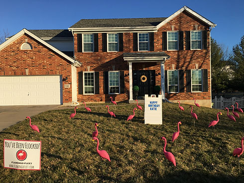 Like the best of things, it all started with a prank with family friends. Being it was a milestone birthday, we decided this was the year we were going to get them good! We had this idea of flocking them with flamingos in the middle of the night. Well it worked! We got phone calls and texts early the next morning. Friends were hoot and hollering all about it! The neighbors and their family all laughed as they all showed up to this milestone birthday with a silly flock of flamingos in their front yard!